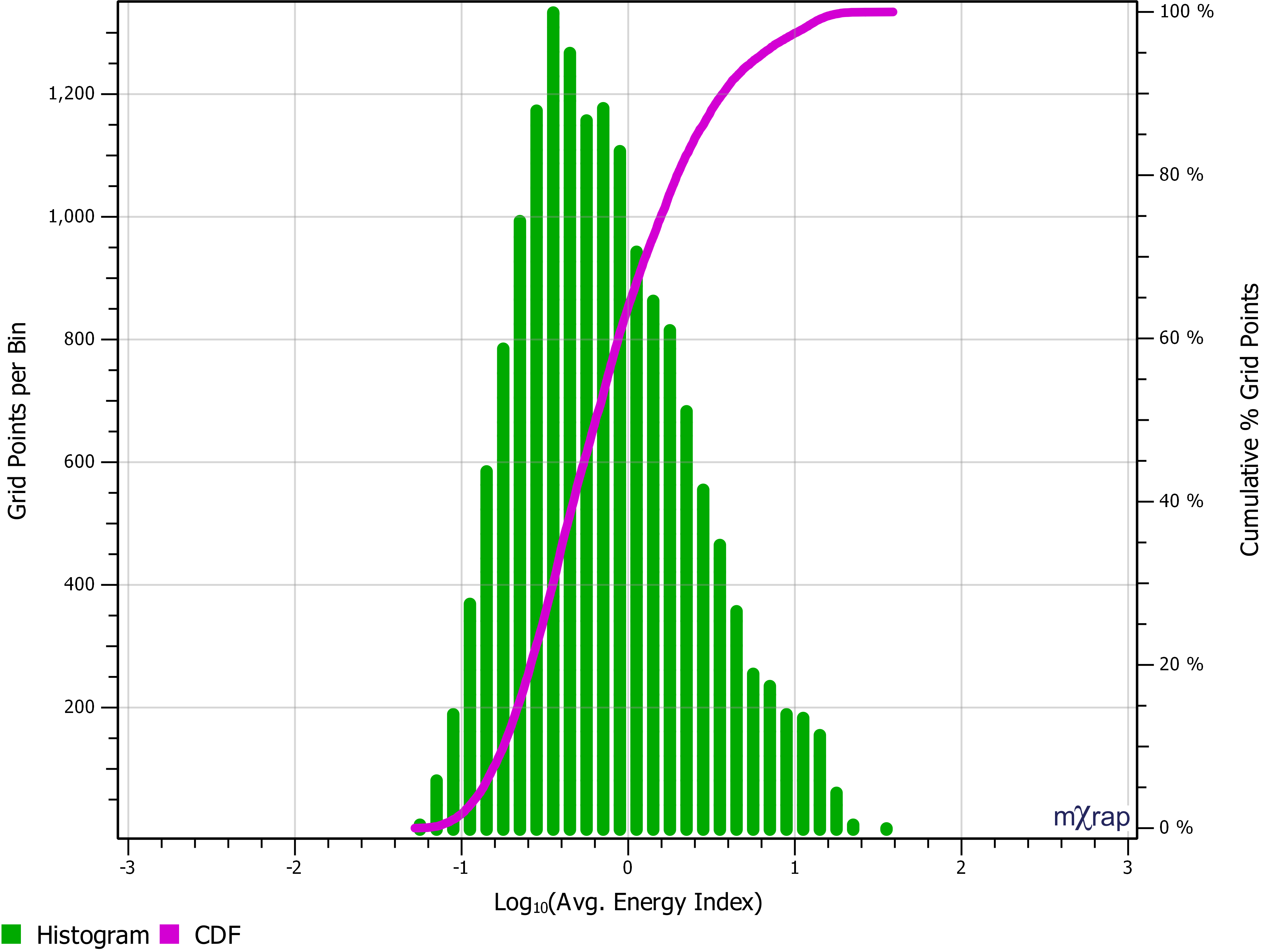 Most of the source parameters in the grid-based analysis app are what we call average or cumulative parameters. This is a distinction both in the nature of the parameter and the underlying calculation method. For some parameters, particularly those associated with rock mass deformation, it makes sense to find the cumulative effect of each event. Like moment for example, the salient information is how much deformation there has been in a certain area. For other parameters, generally related to stress (like energy index), the cumulative value doesn't really have much meaning. This is where we are interested in the average value instead. For parameters that scale exponentially, the average is calculated for log10(parameter).
