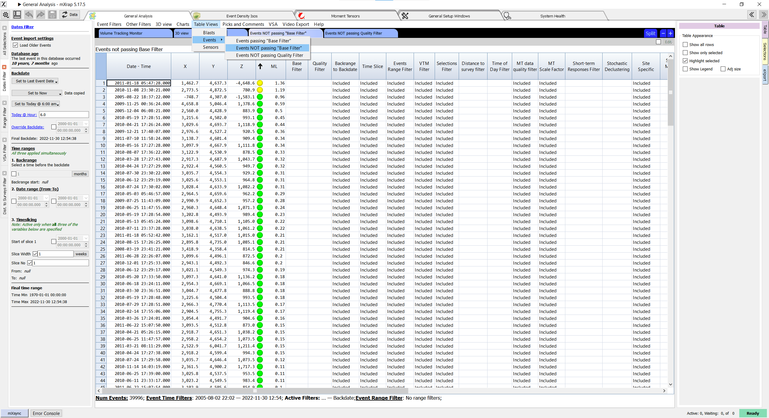 This table shows all of the events which are not passing the base filter. This will help identify whether it is the quality filter that is preventing the event being displayed.