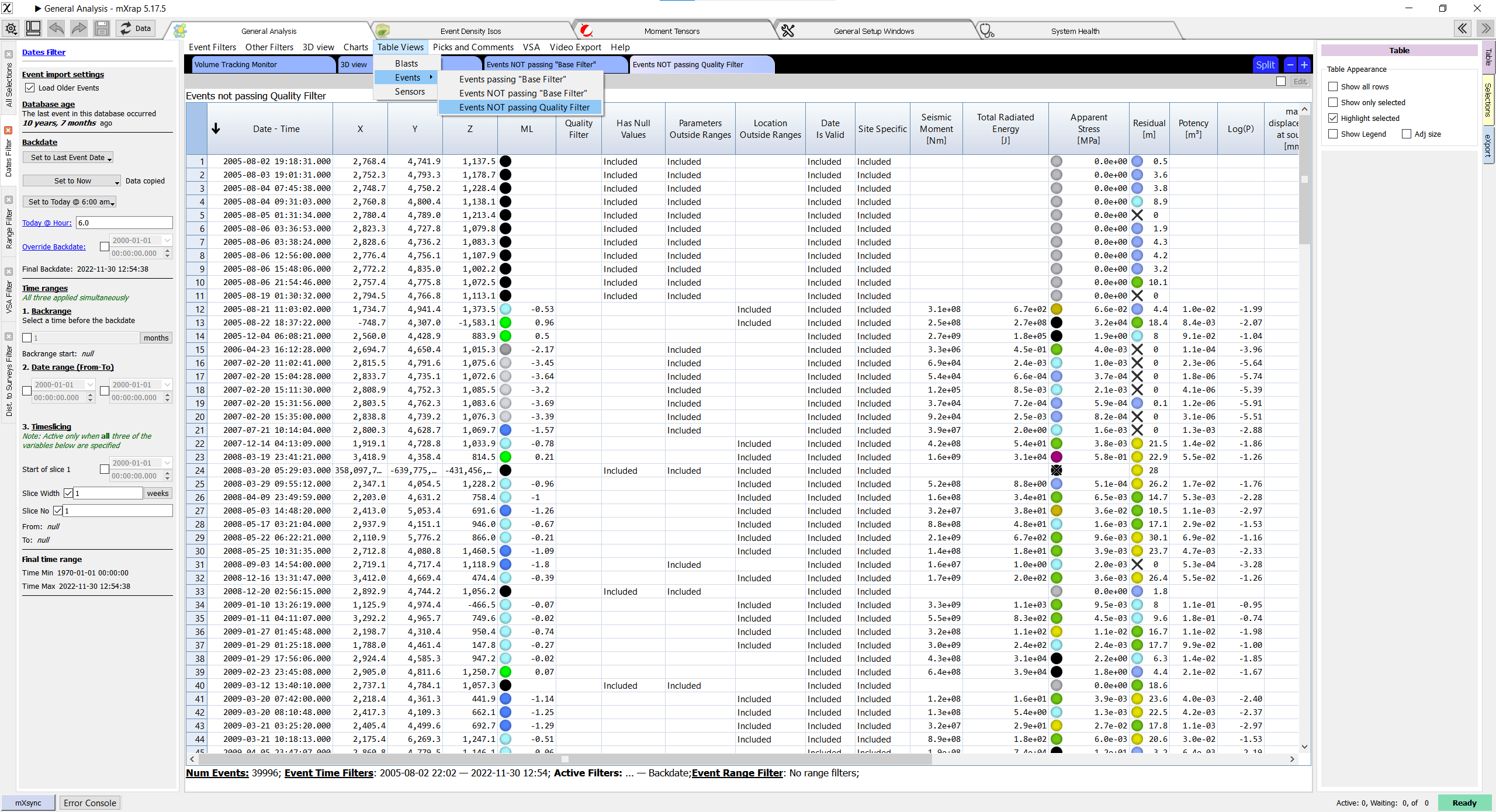 There are a number of quality filters applied to the event database before they are displayed in mXrap. This does sometimes cause confusion because a particular event is visible in your other software, but not in mXrap.