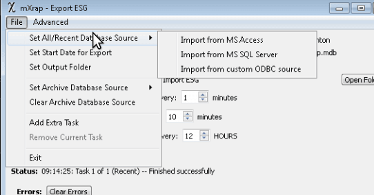 Install the 'mXrap Export ESG' program (usually on the ESG processing server, but this is not necessary - install on a computer that is running all the time).