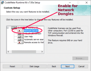 • The CodeMeter driver needs to be installed and configured to act as a Network Server.