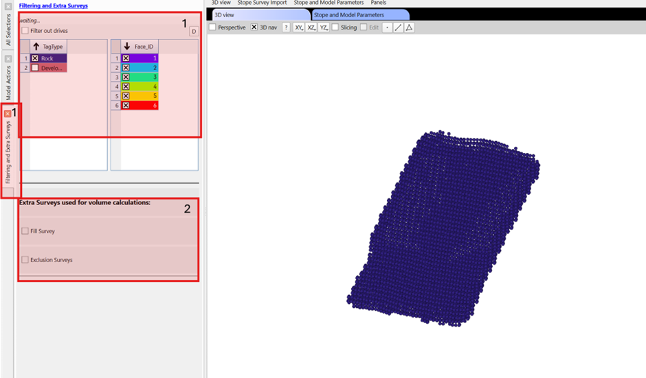 - Filter octrees that aren't represented in the model. Typically exclude development and fill faces. Note, filtered octrees will be given a predicted distance of 0m to build the predicted geometry.