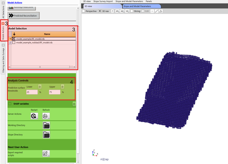 - Select the relevant model e.g. different models may include/exclude blasts (to allow for long term and short term prediction) or be for a specific region of the mine.