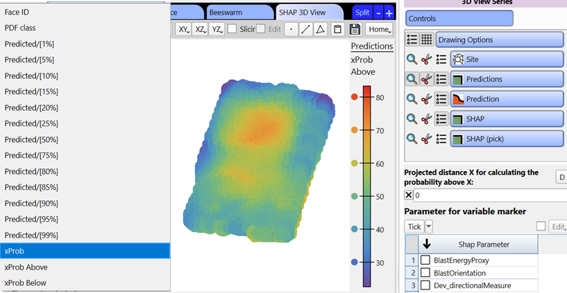 _ Per octree (use the octree design series markers). Visualise the prediction for different percentiles, or the probability of for each octree to exceed a given distance.