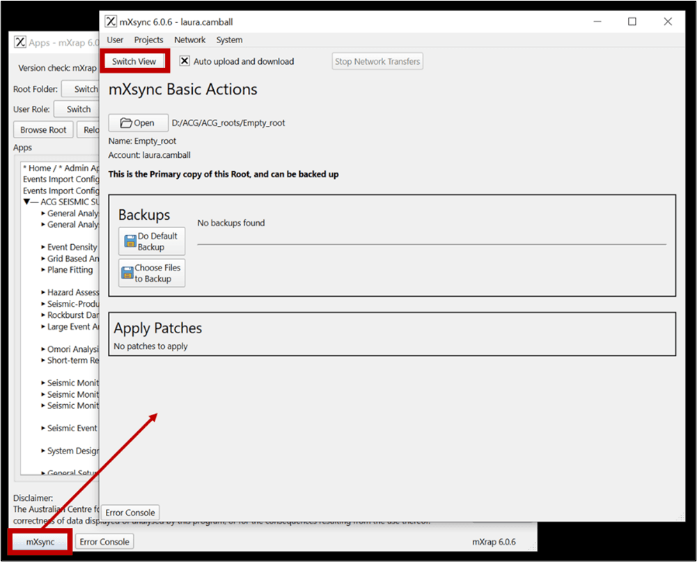 Si abres mXsync usando el botón en la ventana de Aplicaciones, necesitarás 'Cambiar Vistas' para acceder a la configuración avanzada.