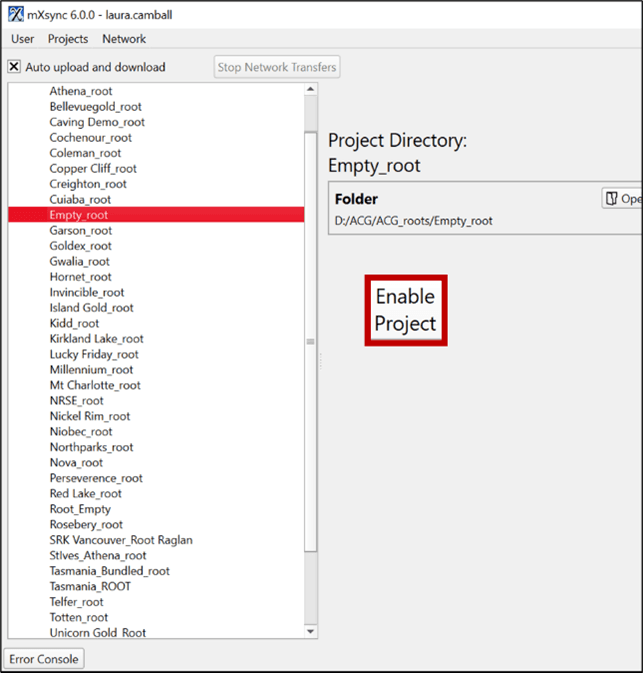 Selecciona la raíz para la que deseas modificar permisos y habilita el proyecto.