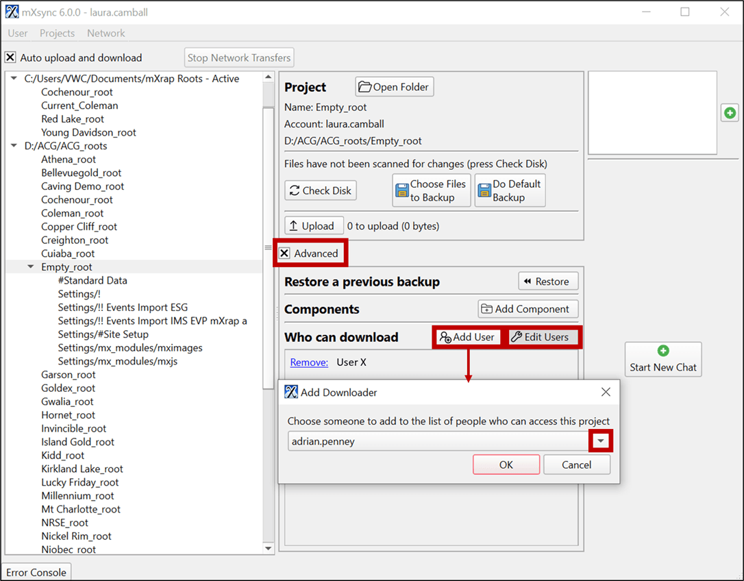 Marca las opciones avanzadas para ver 'Quién puede descargar'. Haz clic en 'Editar Usuarios' para agregar y eliminar usuarios de la lista.