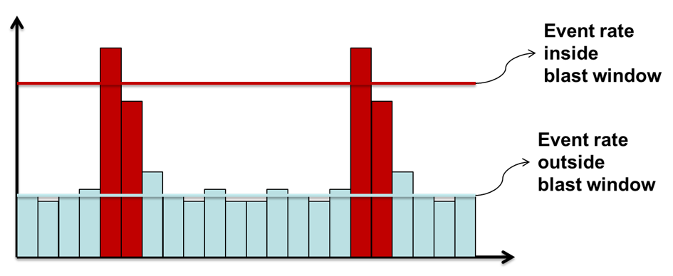 A high blast response ratio, for example, means there are a lot of events associated with blasting, and much less activity throughout the rest of the day. A blast response ratio of below one indicates the activity rate is higher during production periods, which is a sign of ore pass or other production noise dominating the dataset.