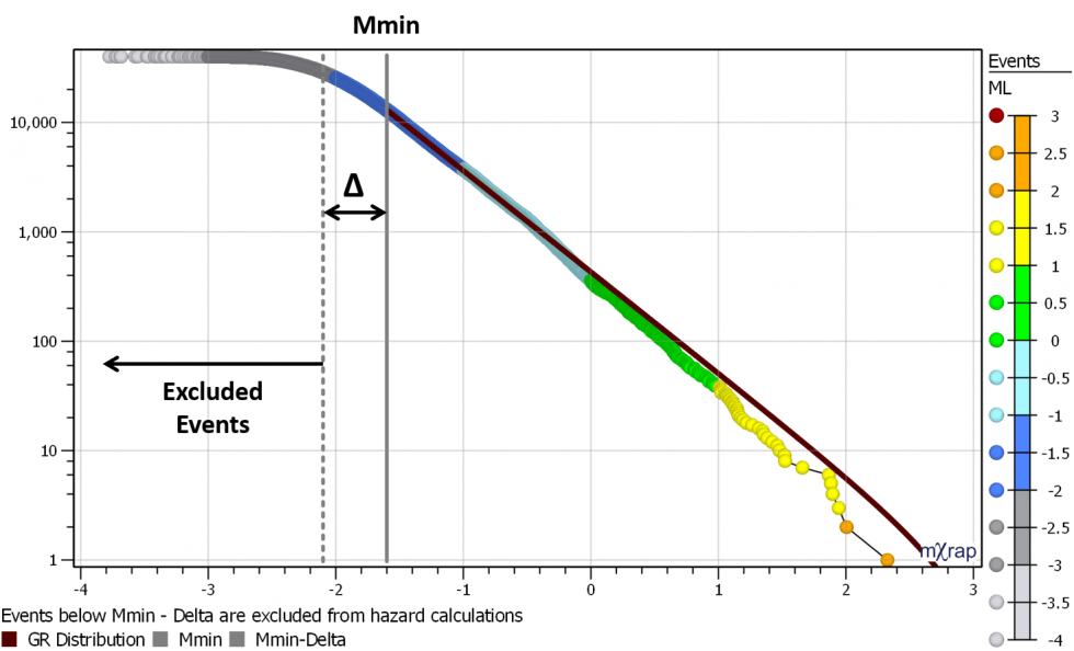 - Mmin - the magnitude of completeness, above which all events are recorded.